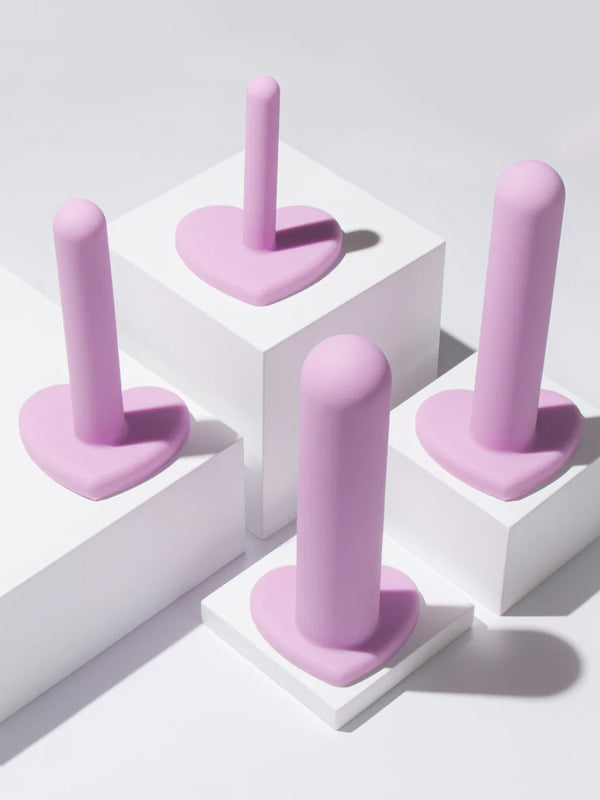 The Blush Wellness silicone dilator set is carefully crafted for your comfort. Each vaginal dilator in this 4-piece kit is made from silky smooth, soft silicone and features a rounded tip to avoid cervical irritation. With 4 differently sized dilators, starting at only 1.27 cm width, the Wellness Set lets you start small and move upward in size whenever you feel ready. These dilators’ heart-shaped bases add a cute, playful touch! Use your favourite water-based lubricant for easier insertion. Made of 100% platinum-cured silicone, the Wellness Dilator Set is hypoallergenic, non-porous, and easy to clean.