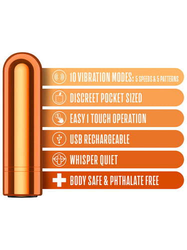 Get ready to vibe out with Kool Vibes. Flaunting a vibrant, tangerine-coloured design, this mini bullet adds a super playful pop to any collection.