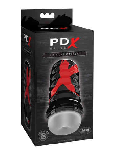 Pipedream PDX Elite Air-Tight stroker features a discreet, easy-grip case with a protective cap. The stroker creates a powerful suction that can be controlled by removing the suction control sticker and using your thumb to adjust the intensity. The transparent, soft sleeve in a neutral, frosted look is lined with massaging ribs, bumps, and pleasing textures. The sleeve can be removed for use without the case and easy cleaning.