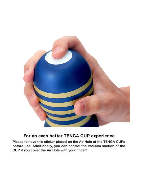Tenga Air Flow Cup discreet masturbator with an intense texture inside. The Air Flow System with its air chambers creates a very tight feeling while the vacuum opening at the end of the masturbator provides more intensity. Once the sticker has been removed from the vacuum opening, a finger can be used to cover or uncover the opening depending on the preference. The disposable masturbator can be used straight away with the included lubricant.
