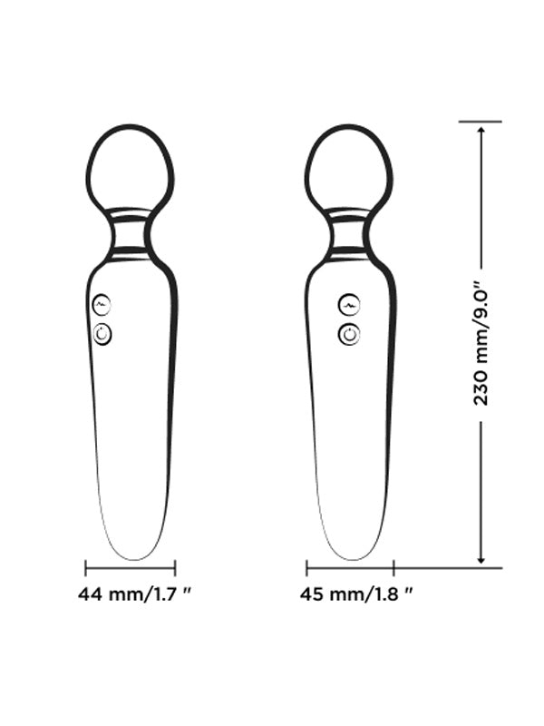 - ROMP Flip wand massager: 6 intensity levels & 4 pattern modes, Size: 23 x 4.5 x 4.4 cm, Two-button control, Charge Time: 180 min, Use time: 1 hour