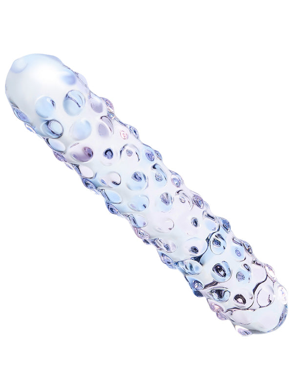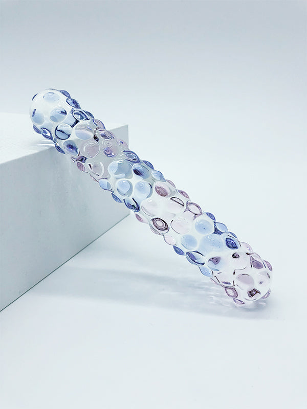 Gorgeous, deliciously textured Gläs clear nubby dildo with purple and rose spiral tint running through it. Use it for body massage, texture play or penetration. Glass dildos can be heated or cooled down for an exciting temperature play. P.S. It feels amazing when used for clitoral massage.