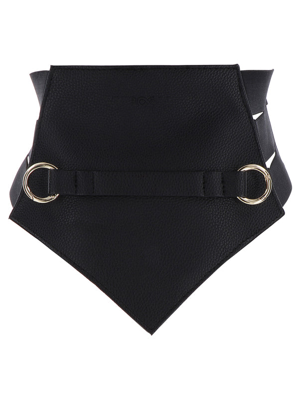 Dress to impress with the TABOOM Dona bondage belt. The belt is strong, made of vegan leather and great for a kinky adventure or to wear as a sexy and stylish accessory. Perfect to layer over evening wear or bare skin for sexy seduction. The belt features 4 metal rings for attaching your bondage accessories of choice.