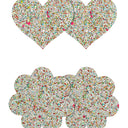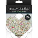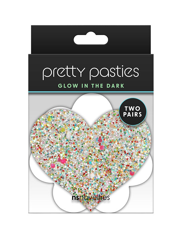 Pretty Pasties by NS Novelties includes 2 pairs of adhesive glow-in-the-dark nipple pasties in heart and flower shapes. Comfortable and secure during wear and effortless to place and remove.