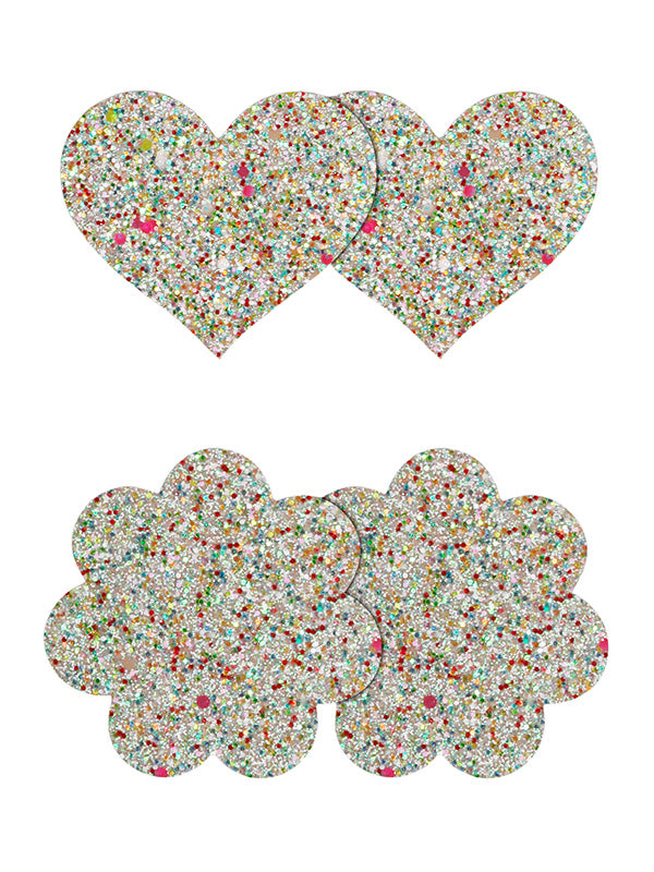 - 2 pairs of shiny glitter nipple pasties
