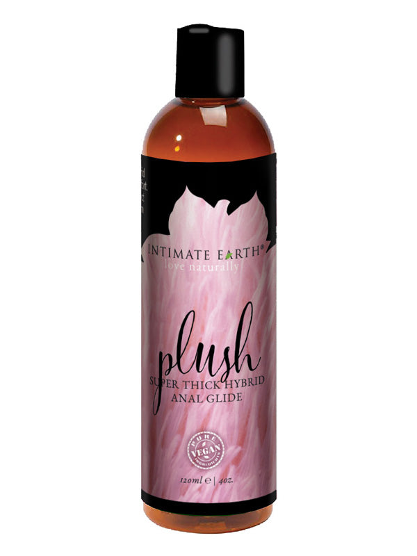 Intimate Earth Plush Super Thick Hybrid Anal Glide is the perfect blend of water and silicone. Infused with organic Liquorice Root, this hand-crafted hybrid silk creates a luxurious and creamy feeling. Enjoy comfort and cushion during anal sex. Extremely long-lasting, smooth, and safe to use with silicone toys. The new Hybrid Standard for Anal!