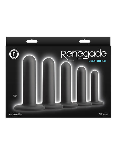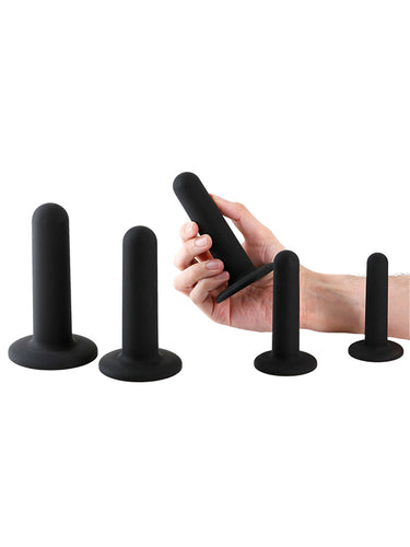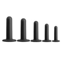 The Dilator Kit by Renegade - increase intimacy and sexual health with this 5 piece set of assorted size silicone dilators in black. Made of premium pliable silicone. Wide suction cup base.