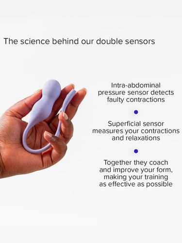 The Perifit Care+ pelvic floor trainer is designed for everyone with a vagina at every life stage who wants to restore, regenerate, and strengthen their pelvic floor. This anatomically intelligent pelvic trainer moves with your body by offering more movement options and strengthening your pelvic muscles. The patented double-sensor technology brings you the most precise measurements of any Kegel trainer.