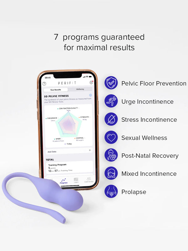Perifit is a medical device with patented biofeedback technology. It was designed to be the best solution to stop unwanted leaks, reduce prolapse, and provide stronger orgasms. Biofeedback allows you to visualize your contractions right in front of you on your device as you contract, monitoring your progress in real-time.