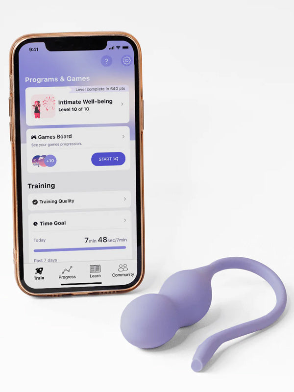- Gamified pelvic floor training via the free mobile app (iOS and Android)