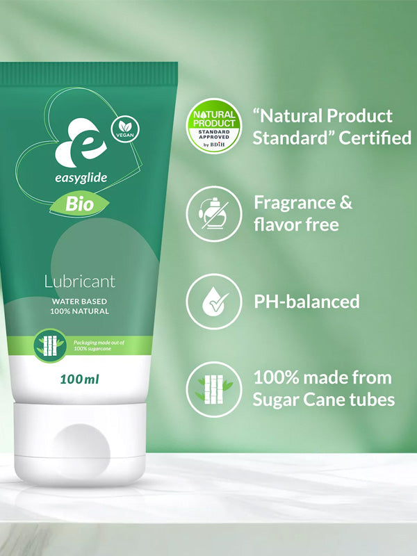 EasyGlide Bio water-based lubricant features a natural and biological formula. As a water-based lubricant, it can be used with all types of sex toys.