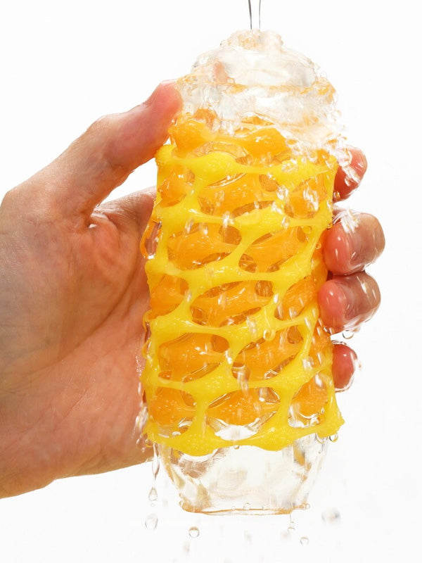 Experience the perfect combination of gentle and firm stimulation! Tenga Arte Weave is a reusable masturbator with tightly-knit dotted texture inside, which is perfect for a tight and bouncy penis massage during a handjob.
