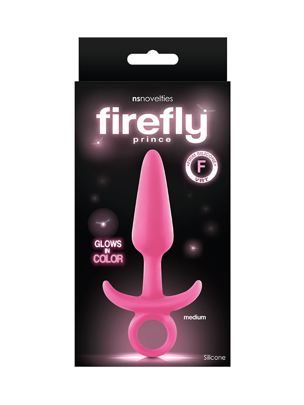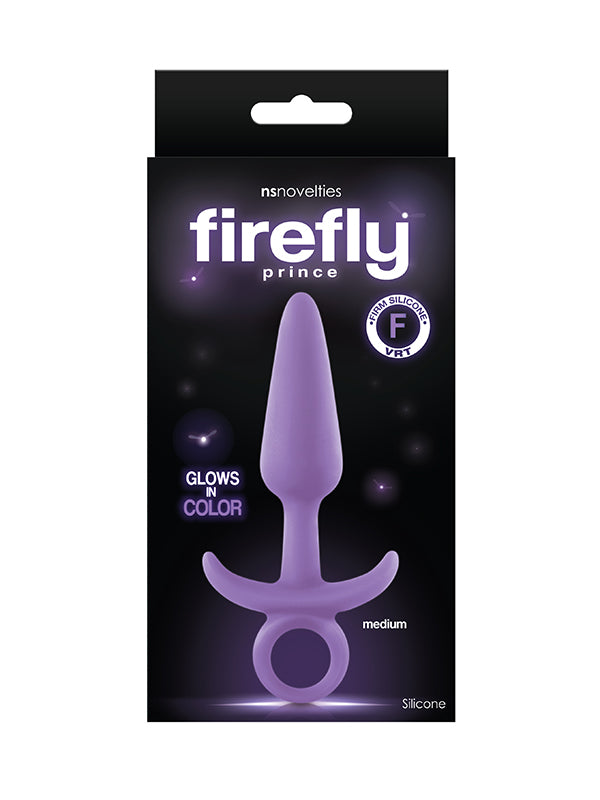 Decorate your booty with the glow-in-the-dark Firefly Prince medium silicone butt plug by NS Novelties! The plug is made of firm, soft silicone that glows in the dark and features a flared T-shaped base with a ring pull for easy removal.