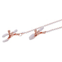 This playful accessory blends luxury with a touch of naughtiness, featuring a delightful peach-colored collar adorned with rose gold hardware and tantalizing attached nipple clamps! The soft faux fur lining ensures comfort, while the adjustable collar guarantees a snug fit for all peach enthusiasts. Secure the rose gold clasp, let the nipple clamps do their flirty magic, and get ready to turn up the heat in your intimate moments.
