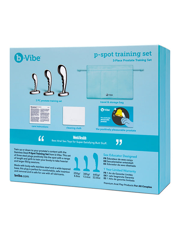 Like the pristine Prostate Plug and Anal Beads from the b-Vibe Stainless Steel collection, the P-Spot set is made from body-safe stainless steel and features a wide tapered base. These plugs are perfect for comfortable, safe insertion and removal while being compatible with all lubricants.