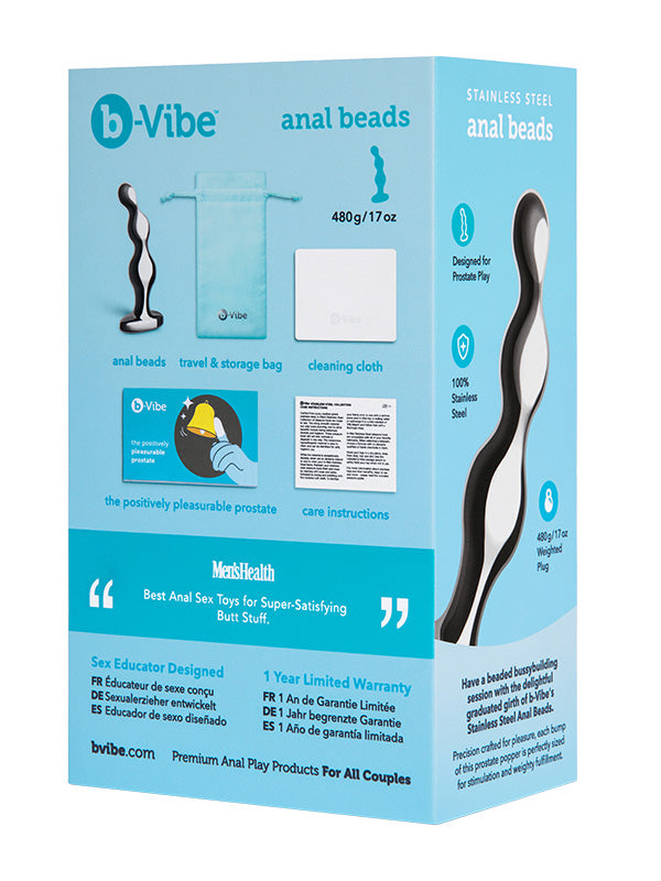 Have a beaded bussy-building session with the delightful, graduated girth of the b-Vibe Stainless Steel Anal Beads. Weighing a hefty pound and precisely crafted for pleasure out of body-safe stainless steel, each bump of this prostate popper is perfectly sized for stimulation and weighty fulfillment.