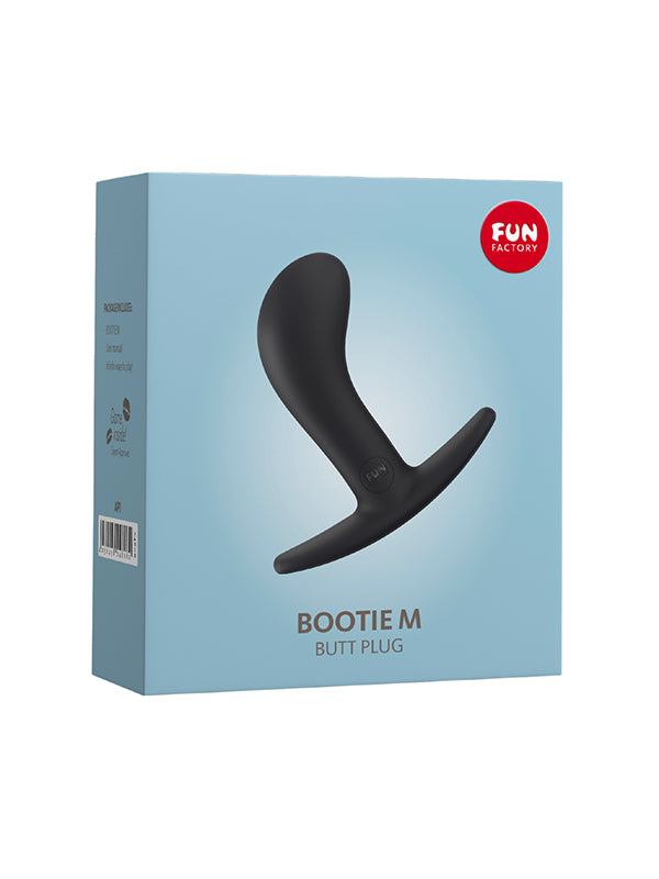 Fun Factory Bootie medium butt plug is the right hardness and flexibility for all your anal adventures. Made from medical grade silicone with velvety soft surface the Bootie plug in medium size is the perfect toy when you’re ready to size up or if you’re looking for the not-too-big-or-too-small butt plug of your dreams.