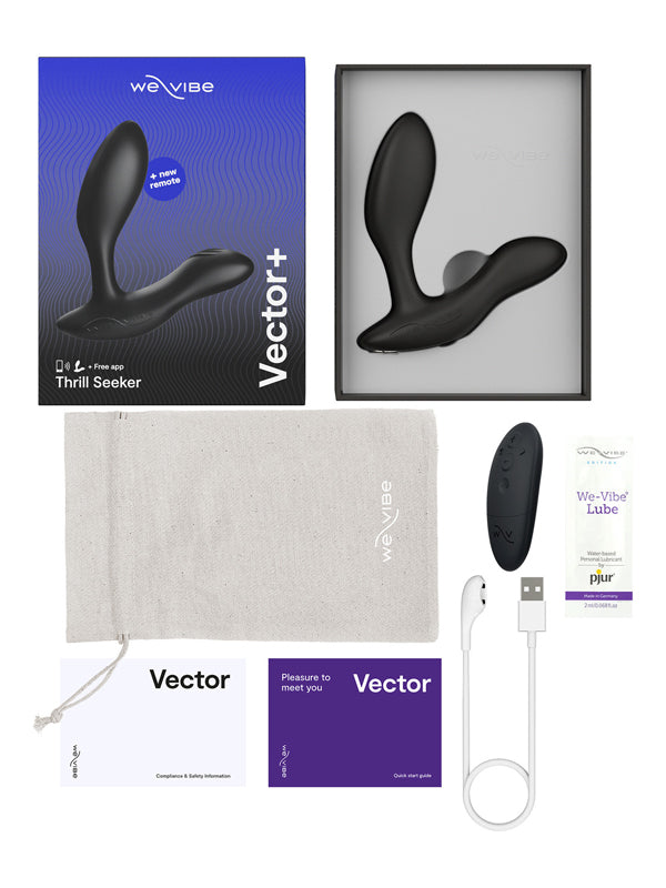 - Includes magnetic USB cable, Quick-start user guide, Wireless remote control, 2ml lube sample, storage bag