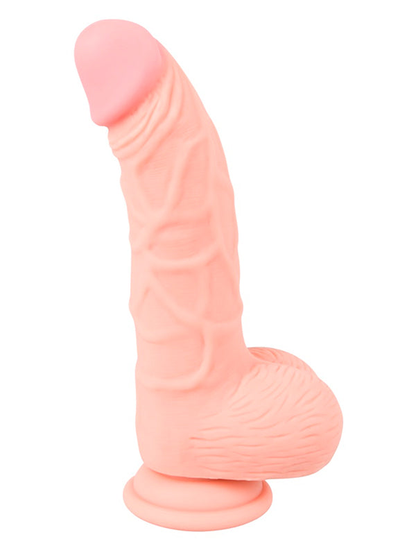 Realistic 20 cm dildo with bulging glans, pronounced veins and testicles. The strong suction cup at its base will stick to any smooth, clean surface providing hands-free pleasure.