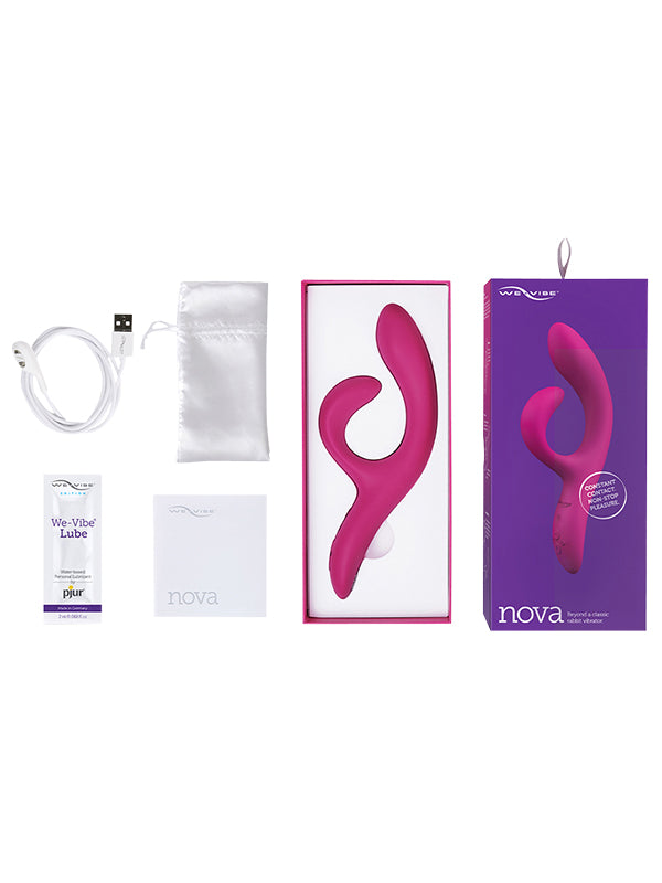 The We-Vibe Nova 2 is a waterproof, rabbit vibrator with 2 strong, rumbly motors for dual G-spot and clitoris stimulation. Nova’s flexible external stimulator ensures constant contact with the clitoris while the internal G-spot stimulator adjusts to fit your unique body. The shape is easy to adjust and then stays in position once you’ve found the perfect fit.
