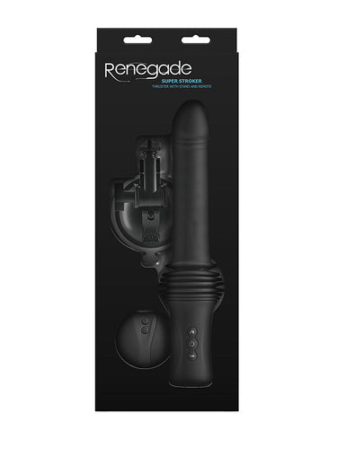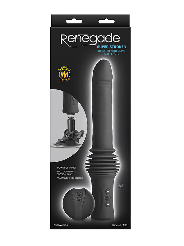 The Super Stroker by Renegade features a 7 inch (17,7 cm) shaft with a long range of motion to produce deep thrusts and robust vibrations for eruptively orgasmic satisfaction. This vibrator includes a screw-in stand with a strong suction cup and a wireless remote for a hands-free setup, as well as a heating function for added sensations. The Super Stroker is rechargeable and suitable with all lubricants.