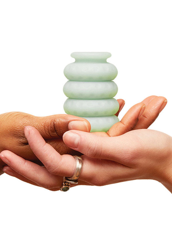 Worn externally at the base of a penetrating partner (e.g. on their shaft or on a toy), Ohnut compresses down to act as a soft buffer during sex. Each set comes with 4 linking rings that allow you to make simple adjustments, so you and your partner can not only discover comfort but also what depths feel really good—for both of you.