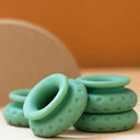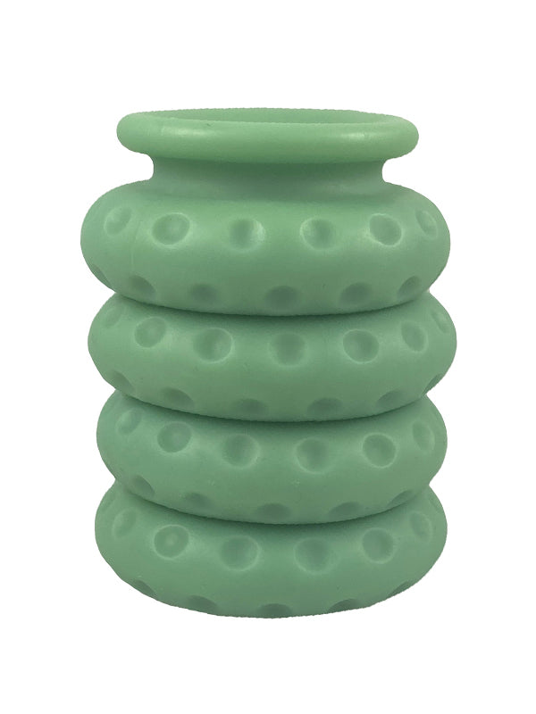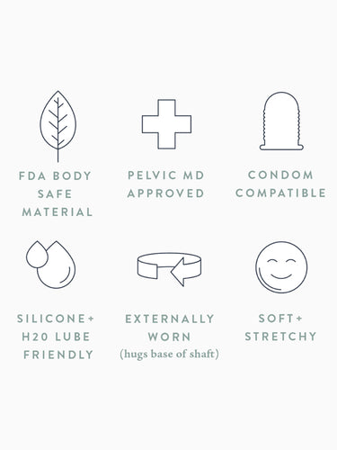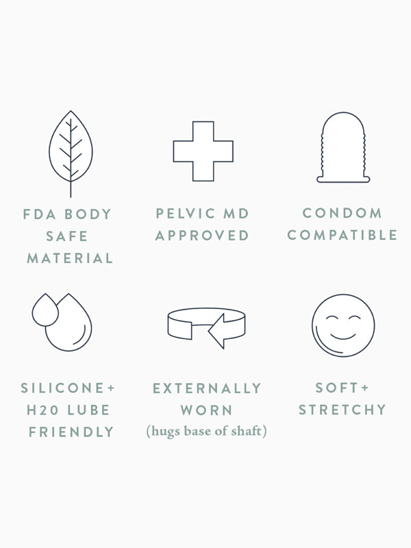 Worn externally at the base of a penetrating partner (e.g. on their shaft or on a toy), Ohnut compresses down to act as a soft buffer during sex. Each set comes with 4 linking rings that allow you to make simple adjustments, so you and your partner can not only discover comfort but also what depths feel really good—for both of you.