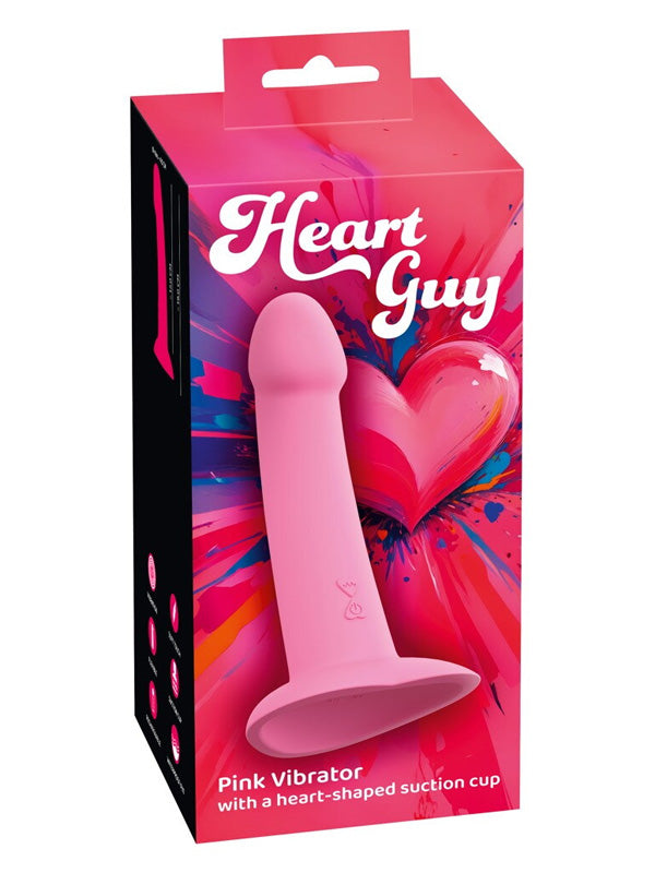 You2Toys Heart Guy pink vibrating dildo with a strong, heart-shaped suction cup. It is made of velvety soft silicone and has pronounced glans for added stimulation. Featuring 10 diverse and powerful vibration modes, Heart Guy is perfect for every desire. The modes can be easily adjusted at the push of a button.