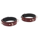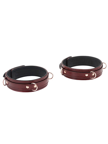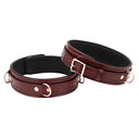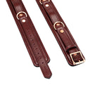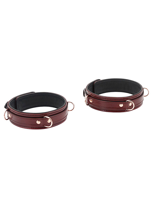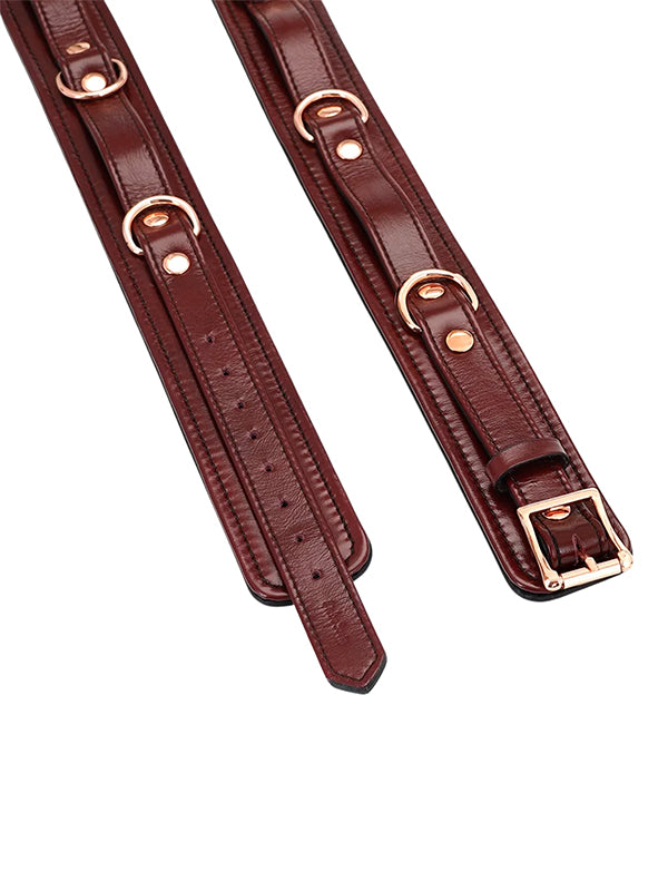 Wine Red thigh cuffs are made from durable cow leather with rose gold hardware. Each cuff is equipped with a sturdy buckle and 3 D-rings which allow for the cuffs to be connected with other bondage accessories. Perfect match with the other Wine Red series accessories.