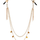Sportsheets Amber chain & nipple clamps feature amber-inspired beads that dangle delicately on the gold-plated, elegant chains. The chains are attached to the adjustable nipple clamps and will add intensity to your nipple play.