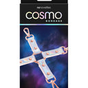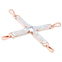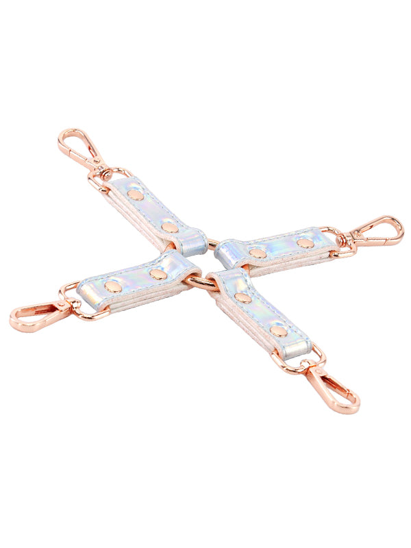 NS Novelties Cosmo holographic hogtie with 4-way straps–decorated with rose-gold hardware.