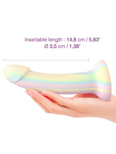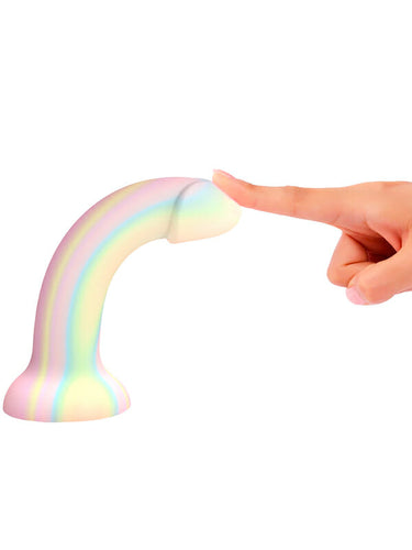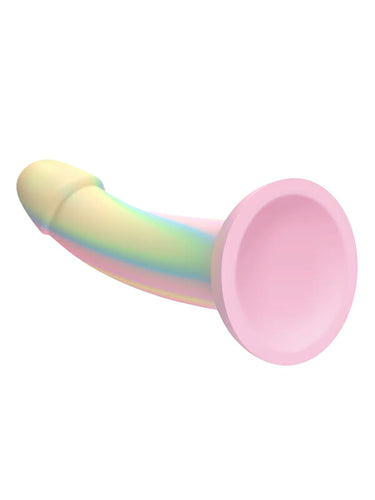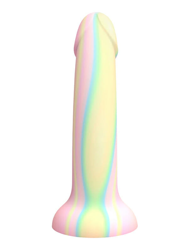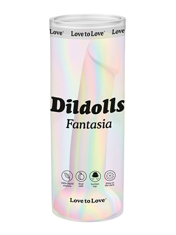 Love to Love Dildolls Fantasia is a silky smooth silicone dildo arrayed in pastel tones–it even glows in the dark! Its flexible curved shape ensures comfortable G-spot or P-spot stimulation. The dildo features a strong suction cup so it can be attached to any smooth, hard surface for hands-free pleasure. After use, clean the dildo with warm, soapy water or with a suitable sex toy cleaner.