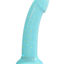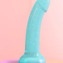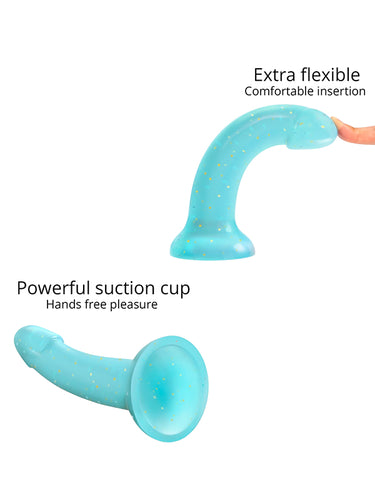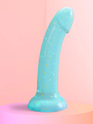 Love to Love Dildolls Nightfall is a silky smooth transparent blue silicone dildo filled with golden stars. Its flexible curved shape ensures comfortable G-spot or P-spot stimulation. The dildo features a strong suction cup so it can be attached to any smooth, hard surface for hands-free pleasure. After use, clean the dildo with warm, soapy water or with a suitable sex toy cleaner.