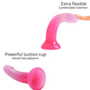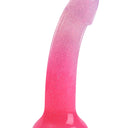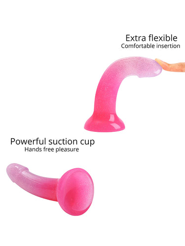 Love to Love Dildolls Sunrise is a silky smooth transparent gradient pink silicone dildo filled with shiny glitter. Its flexible curved shape ensures comfortable G-spot or P-spot stimulation. The dildo features a strong suction cup so it can be attached to any smooth, hard surface for hands-free pleasure. After use, clean the dildo with warm, soapy water or with a suitable sex toy cleaner.