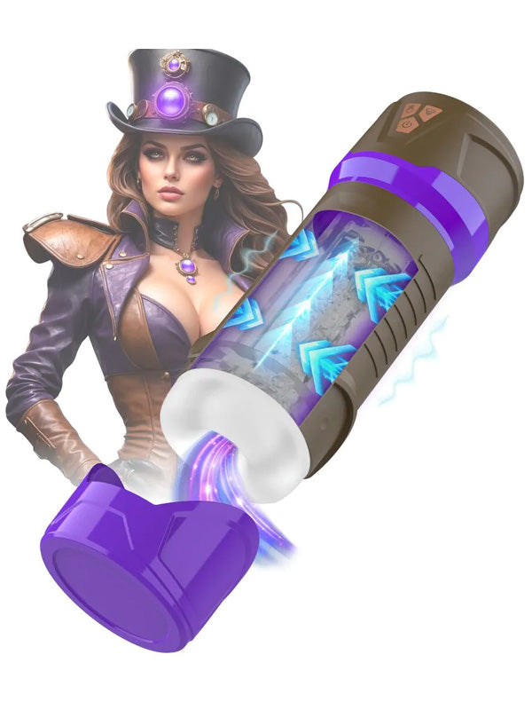 Step into a world of gears, grit, and guilty pleasure with Steam Mistress Misty, the fiery steampunk Latina who plays by her own rules. This multi-function masturbator delivers intense stimulation with sucking, vibrating, and squeezing features designed to bring your fantasies to a full boil.