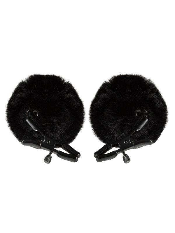 Blush Noir Furry Nipple Clamps will bring a new dimension to your sensation play. Tease your partner with the soft, fluffy “bunny tails”…then tighten the nickel-free metal clamps to find the perfect level of pressure.