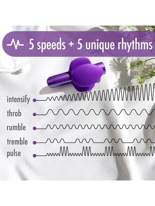The Blush Noje B6 Iris set combines the most powerful vibe of its size with a smooth silicone sleeve. The attachment fits easily between two fingers, so you can hold the rumbly vibes in place without having to grip the bullet. The mini vibe features 10 intense vibrating functions with 5 speeds and 5 patterns.