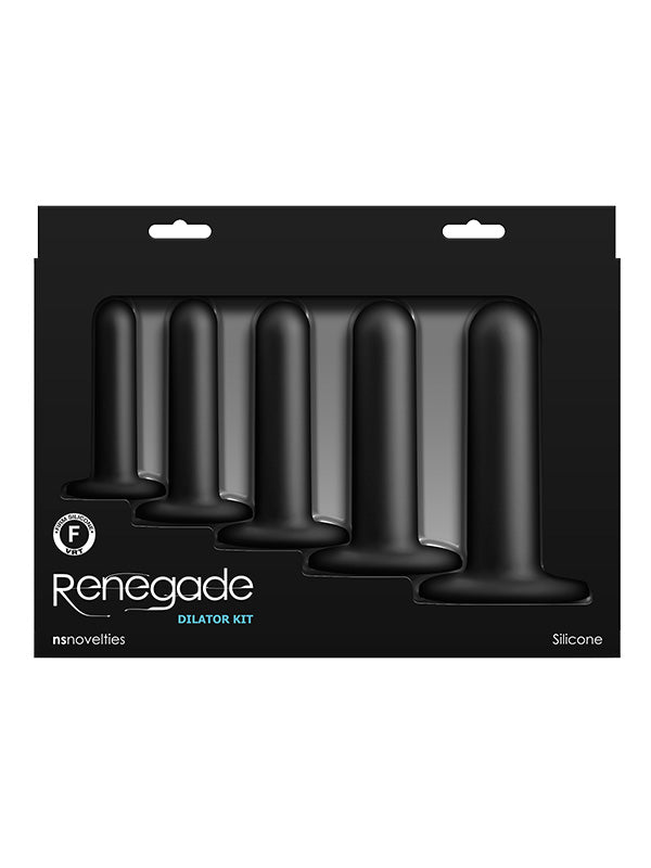 The Dilator Kit by Renegade - increase intimacy and sexual health with this 5 piece set of assorted size silicone dilators in black. Made of premium pliable silicone. Wide suction cup base.