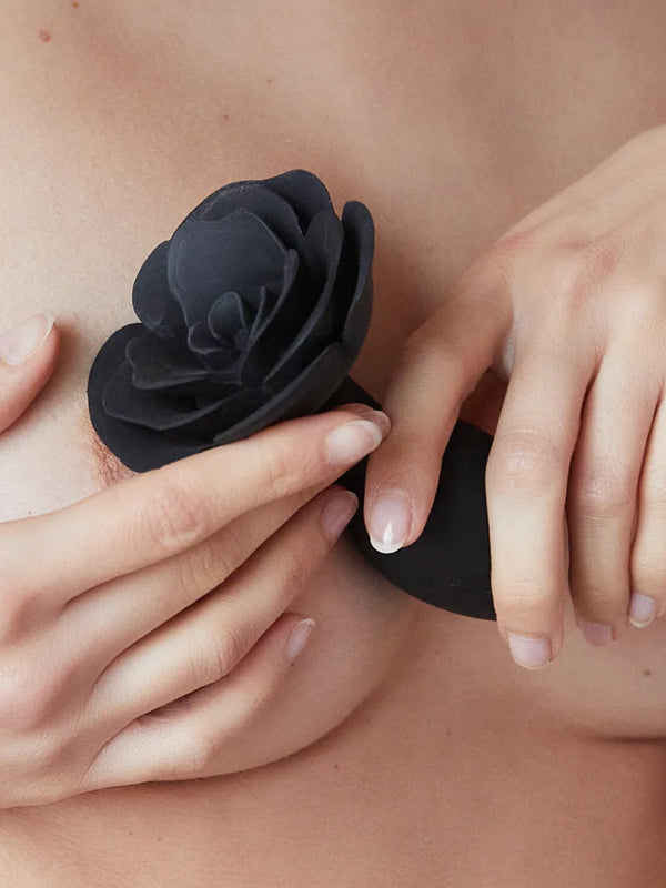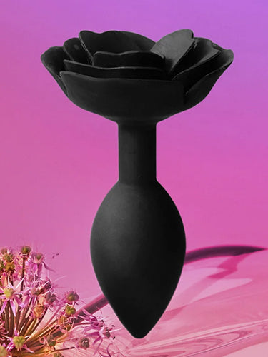 - Silicone butt plug with rose shape base