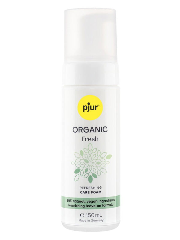 pjur Organic Fresh is a fragrance-free refreshing foam with 99% natural, vegan ingredients. It transforms any paper tissue into a gentle cleansing wipe for the intimate area, leaving a pleasantly fresh feeling – anytime, anywhere and without rinsing.