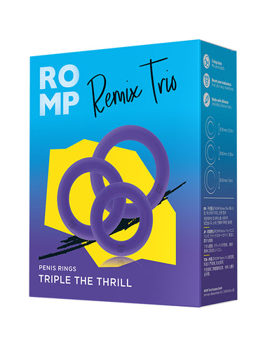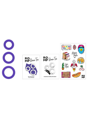 ROMP Remix Trio packs a selection of three durable, super stretchy non-vibrating penis rings to support harder erections. Made to fit all sizes and shapes, wear one, two or all three in different shaft and testicle combinations for solo and partner approved pleasure.