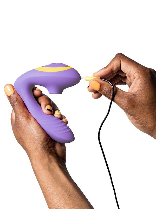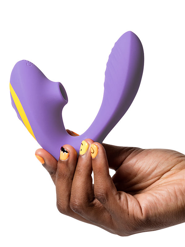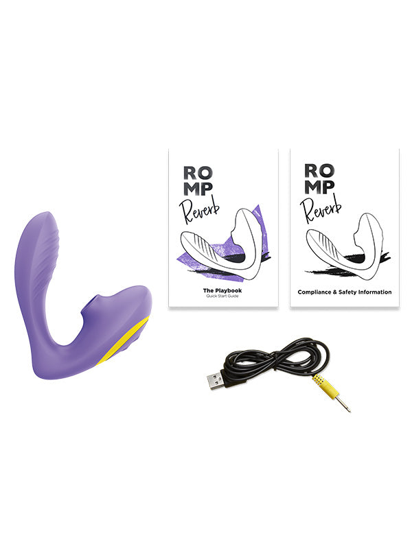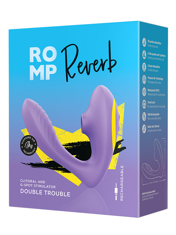 ROMP Reverb is a rabbit vibrator with Pleasure Air Technology. This includes an internal G-spot vibrator arm and an external clitoral suction stimulation head, which combine to give two types of stimulation, both inside and out, for powerful, blended orgasms.