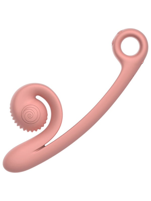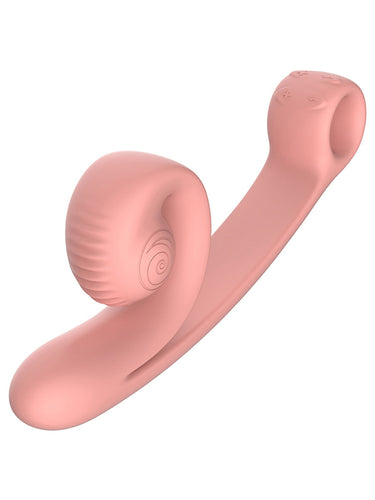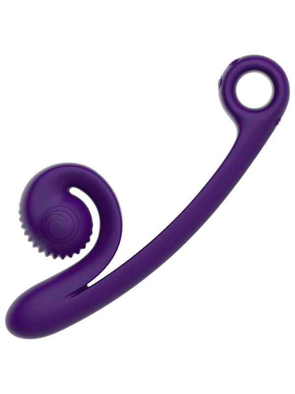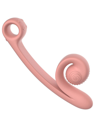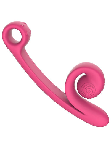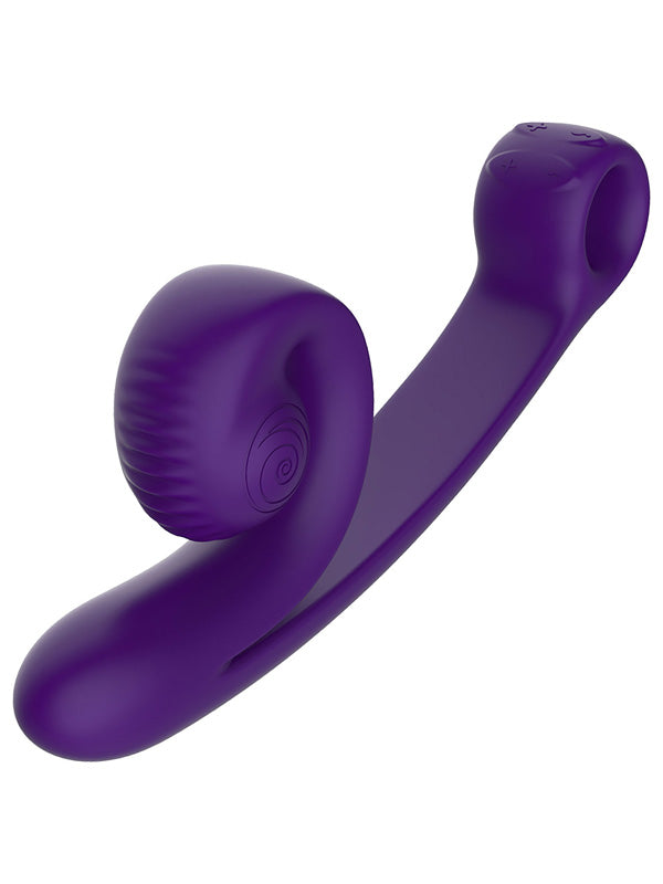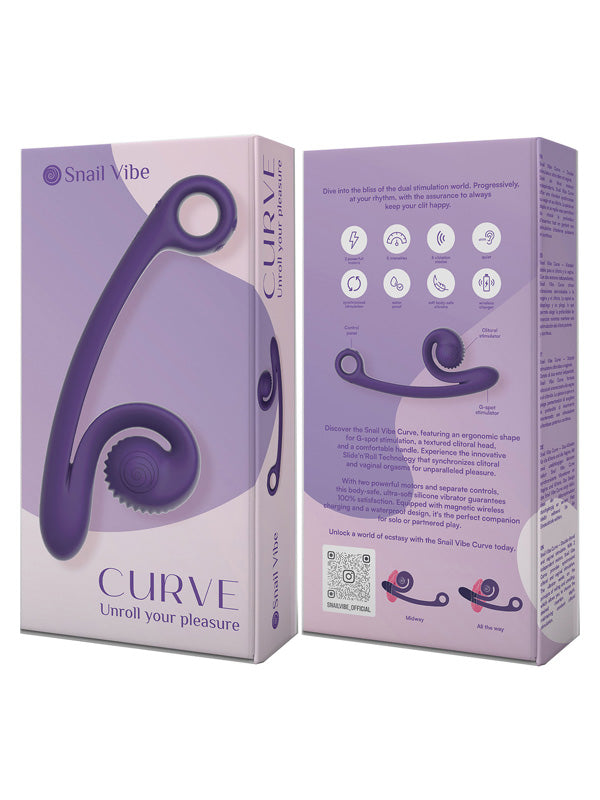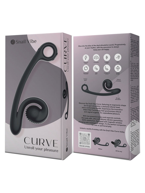 The Snail Vibe Curve unique vibrator provides synchronous stimulation of the clitoris and vagina by means of sliding movements that simulate intercourse. You control the vibrating, curved shaft and thrust the Snail Vibe to the depth of your choice while the textured external vibrator constantly maintains contact with the clitoris. This combination of simultaneous vaginal penetration and clitoral stimulation can produce extremely strong blended orgasms.
