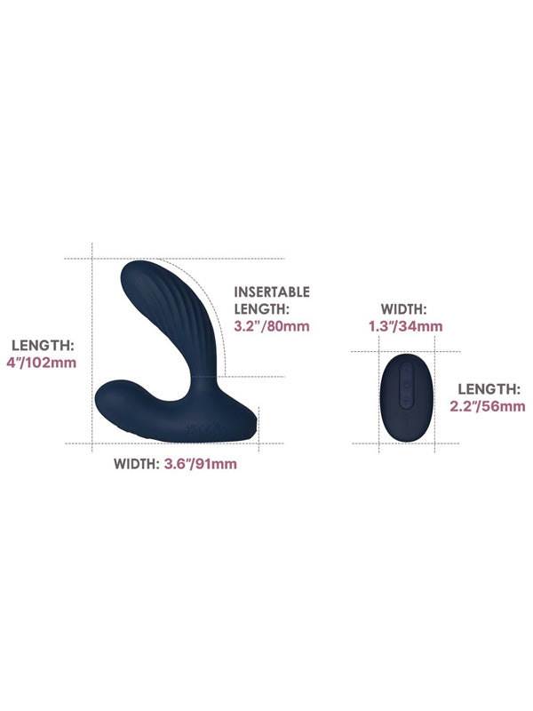 - Size: 9.1×10.2×3.8 cm (Vibrator), 8×3 cm (Insertable), 3.4×5.6×1.4 cm (Remote)