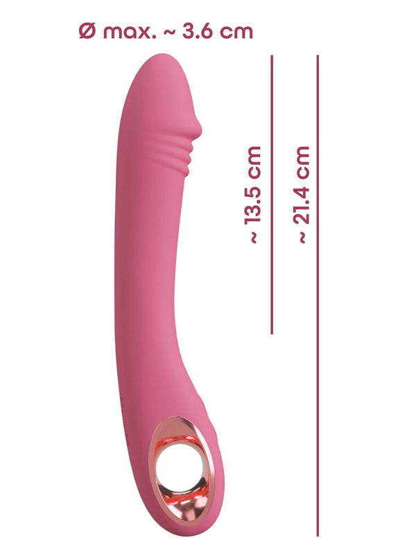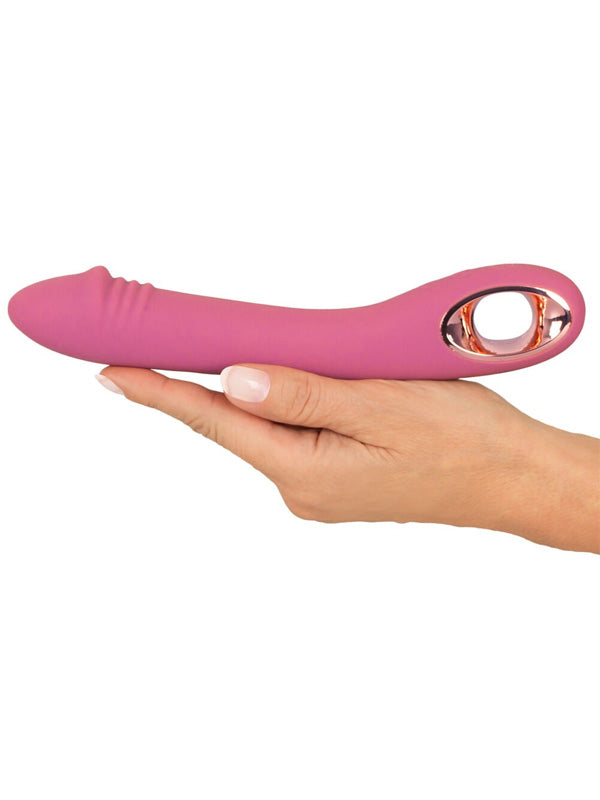 The G-spot vibrator is made out of velvety soft silicone. The flexible shaft adapts perfectly to the body and its movements during play.